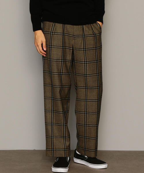 KINLOCH ANDERSONのチェック生地を使ったカジュアルパンツです。クラシックな雰囲気のチェック柄がコーディネートのアクセントに最適。季節感のあるウールを使用した秋冬シーズンらしい仕上がりです。もも周りのシルエットにゆとりを持たせたテーパードをベースに、ワイドなシルエットでデザイン。スタイリングにプラスするだけでトラッドな雰囲気をプラスしました。カジュアルな中にも品の良さがある仕上がりで、いつもとは違った印象を演出してくれる一押しのパンツです。ブラックのメイン画像のモデル:身長179 B81 W68 H89 着用サイズ:Mベージュのメイン画像のモデル:身長179 B81 W68 H89 着用サイズ:M商品の詳細ディテール紹介画像のモデル:身長180 B88 W70 H90 着用サイズ:M※画像の商品はサンプルの為、実際の商品と仕様・加工が若干異なる場合がございます。また、記載のサイズ・素材が若干変更となる事がございます。※照明の関係により、実際よりもやや明るく見える場合がございます。またパソコンなどの環境により、若干製品と画像のカラーが異なる場合もございます。予めご了承ください。~グリーンレーベル リラクシング各店へのセール品の在庫のお問い合わせに関して~ セール品の在庫の有無に関して店舗ではお答えできかねる場合がございます。 また、セール期間中の店舗でのセール品のお取り置きはお受けいたしておりません。予めご了承下さい。品名:CM K/Aウールチェック FULL-CUT 品番:3214-199-2611