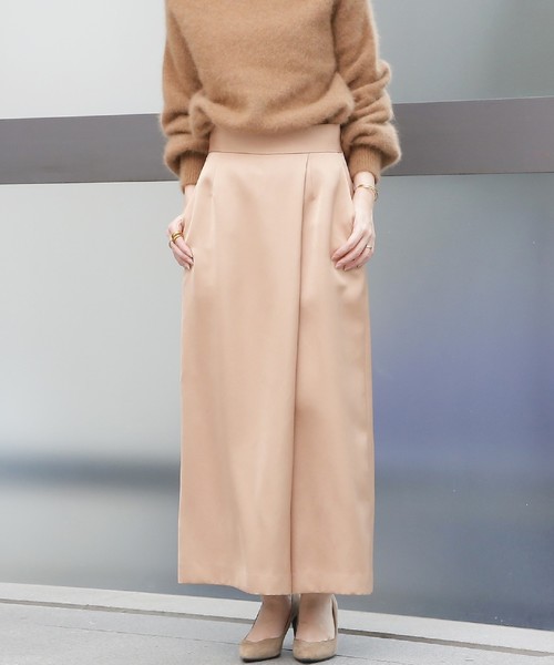 パコっとしたシルエットのワイドパンツ! 四角くすとんと落ちるシルエットがかわいいラップデザインのワイドパンツです。 すこし短めの丈のバランスも絶妙なデザイン。 はりとつやのある素材を使用しているので、かわいいデザインですがシックな印象。 お仕事のときのきれいなブラウスから、この秋冬人気のふわふわのボリュームニットまで、コーディネートの幅も広いアイテムです。