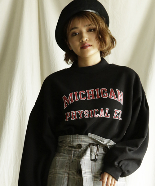 アメカジ風なロゴスウェットを、ハイネック&ボリューム袖で今年らしくアレンジしました! 裾にはギャザーを入れて、丸みのあるシルエットにしています。 裏起毛素材で安心のあたたかさ♪ [クリーニング] 手洗い可ウェットクリーニング(W)