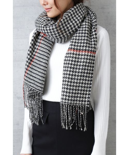 大人っぽくクラシカルな印象の千鳥柄ストール。これからの季節、シンプルになりがちなアウタースタイルのアクセントにもぴったり。しっかりと長さがあるため、様々な巻き方アレンジを楽しめます。ソフトな着け心地も◎。