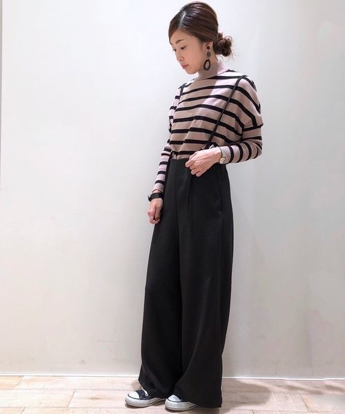 しなやかな生地で大人顔に仕上げたサスペンダー付きワイドパンツ。華奢なショルダーストラップが女性らしさを引き立て、洗練された印象を与えてくれます。合わせるインナー次第で、カジュアルにもきれいめにも着れるパンツは、大人女子のマストハブアイテムです。