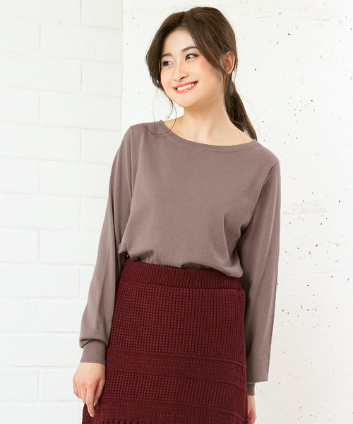 デイリーに大活躍間違いなし!選べる2typeネックのシンプルニット。【素材・サイズ感】Vネックとボートネックの2typeデザイン。なめらかな肌触りで程良くストレッチするニット素材のデイリートップス。ボディラインを拾わないゆったりとしたシルエットで、リラックス感のある着心地◎【スタイリング】合わせるアイテム次第でオフィススタイルにも。