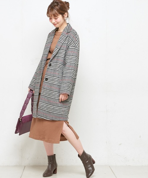 【2018AW natural couture】秋冬に映えるチェック柄チェスターコート 秋冬の定番チェスターコートに、人気のチェック柄をのせた新作が登場!温か味のあるウール素材を使用しており、起毛がかった表面感をお楽しみ頂けます。また、裏地も付いているので肌の敏感な方でもお召し頂きやすく◎少しゆったりとしたサイズ感で、羽織るだけでこなれ感のある今っぽい着こなしにシフトしてくれます。長過ぎず短過ぎずな絶妙な丈感で、ワンピースや長めボトムとの相性も抜群です。どちらのカラーも、赤のラインが目を引きシンプルコーデと合わせるだけでも様になる、今季押さえておきたい1着です。