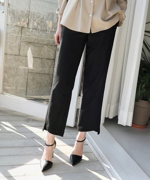 オフィスルックにも使えるシンプルなスラックス。ゆとりがあり、脚のシルエットを拾わず、細見えします。 ※WEARに記載してある金額と、DHOLIC通販サイトに記載してある金額にシステム都合上、稀に誤差が生じます。正しい金額はDHOLIC通販サイトに記載された金額です。