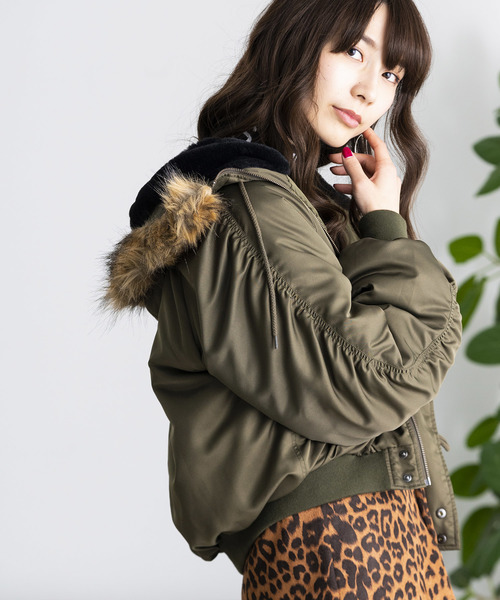 ミリタリーアウターの定番である”N-2B” ウエストと袖口にリブが施されている為、防寒性に優れています。 また、フード裏はボアで仕上げ、ハイネックを採用しているのも特長。 ミリタリーアイテムの持つ無骨な雰囲気はそのままにスタイリッシュさをプラス。 ショート丈かつ程よくゆとりのあるシルエットで、フェミニンな雰囲気を着こなしに演出します。 定番のカーキをはじめ、着まわしやすいブラックとベージュを含む3色展開でご用意しました。 今季はベレー帽やスニーカーなど、小物で遊びを効かせたコーディネートもオススメです。 ※実際の商品と仕様、加工、サイズが若干異なる場合がございます。 ブルゾン / ミリタリー / フライトジャケット