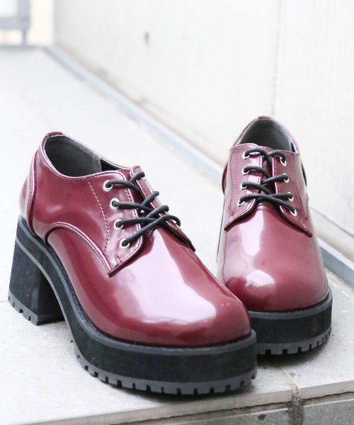 人気のレースアップシューズを厚底デザインに 厚底デザインで仕上げたレースアップシューズ。 単色仕様で幅広いコーディネートに合わせて頂けるのが特長です。 インソールにはクッションが入っているので履き心地も快適。 パンツスタイルに合わせてマニッシュに、またフレアスカートに合わせてガーリーフェミニンにと様々なアイテムと相性よく、流行にも流されず、長くご愛用いただけるデイリーユースな万能アイテムです。 お値段も手頃でご自身用は勿論、プレゼントにもオススメです。 M=23.5cm相当 L=24.5cm相当 【ブラック, ワイン】エナメル 【ブラックその他】レザー ※履き方・足型等、個人差がございますので、あくまでも参考程度にお考え下さいませ。 マニッシュシューズ / オックスフォードシューズ / レースアップシューズ / おじ靴 / ラウンドトゥ / 厚底靴 / 厚底シューズ / 厚底ヒール / ボリュームソール / チャンキーヒール / 太ヒール / ボリュームヒール ■厚底靴に関しての注意事項■ ※ファッション性を重視した商品の為、履きなれない状態での長時間の着用はお控え下さい。 ※歩くために必要な強度を保持している商品ではありますが、走る・跳ねる等の行為をとられた場合、瞬間的に想定以上の負荷がかかり商品が破損する恐れがありますのでご注意ください。 ※足を捻る・挫くなどして転倒しかけた際、場合によっては骨折等の大きな怪我を回避する為にバンドの引き抜けや底材の剥離が発生する事がございます。 ※段差や傾斜を歩行される際はご注意下さい。 ※足首を痛める恐れがある為、厚底靴やヒールの高い靴を着用しての自転車のご利用はお控え下さい。 ※厚底靴を着用した状態でのお車の運転は各都道府県の条例により禁止されています。お車を運転される場合は厚底靴の着用はおやめ下さい。