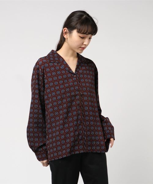 レトロっぽさを感じさせる小紋柄はトレンド感をプラス。サラッとした生地感で着心地も抜群の開襟シャツ。大き目のサイズでゆったりとした着こなしもオススメ☆