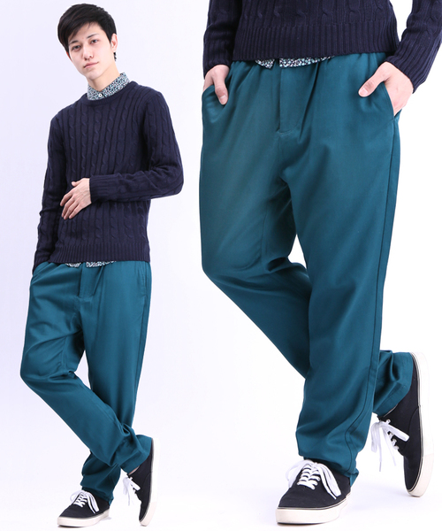 【Samurai ELO 6月号掲載商品】ツルッとした質感が特徴の、レーヨン混地を使用したイージーパンツ。太腿周りに程よい緩さを持たせたテーパードシルエットで、足元をスッキリと見せてくれるひと品。ウエストはゴムになっており、リラックスして快適に着用頂けます。遊び心あるデザインはコーディネートのアクセントとしてもオススメ。ニットキャップやスウェットと合わせるような、MIX感ある着こなしも今季オススメです。 店舗にてお問い合わせの際は、下記の品名・品番をお申し付け下さい。品名:コットンレーヨンイージーパンツ 品番:B14SP-1502-001 ワイン model:H182 着用サイズ:MEDIUM グリーン系その他・ネイビー model:H182 着用サイズ:LARGE 詳細画像 model:H175 B78 W72 H90 着用サイズ:LARGE WEGOの特集ページはコチラ