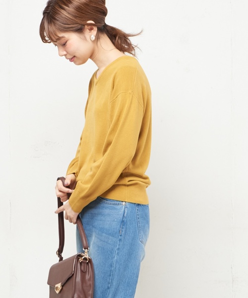 【2018AW natural couture】人気のプチプライス・シリーズ! カシミアのような柔らかな肌触りのシンプルニット 1枚あると重宝する、すっきりとしたVネックのシンプルニット。まるでカシミアのような柔らかい生地感をしており、肌触りが良く高見えのする1着。袖口と裾部分はリブ編み仕様で、きゅっと引き締まった女性らしいシルエットを実現。また、裾はリブ編みにしている事で、ボトムにインしなくてもブラウジングしたかのように見せてくれます。ニットなのにお洗濯も可能なプチプライスで、何枚でも欲しくなっちゃいます!