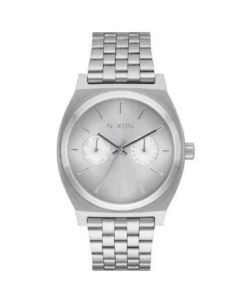 【ブランドのエントリーモデルに日付&曜日表示のサブダイアルを搭載、より高級感や大人の印象を備えたユニセックスウォッチ】 NIXON が誇るエントリーモデルの定番が、さらに進化を遂げて誕生したTHE TIME TELLER DELUXE(タイムテラーデラックス)。日付&曜日表示のサブダイアルを搭載し、機能性を特化させただけでなく、よりオケージョンやスタイルを問わない仕上がりになりました。使いやすいシンプルなトータルデザインはそのままに、より高級感や大人の印象を持ったユニセックスウォッチを是非お試しください。 本商品はご自身でバンドサイズ調整が可能なモデルとなります。 【サイズ調整方法】 [1]スライド側留め具の長方形穴に矢印表示が無い方向からドライバーなどを挿し込み、テコの原理で留め具を外します。矢印の方向から挿し込んでしまうと、内部パーツが破損する可能性がありますのでご注意ください。 [2]外れた留め具をスライドさせ、お好みの位置でバックルの裏側にある溝をベルトのコマとコマの溝に合わせ押し込むことで固定されます。