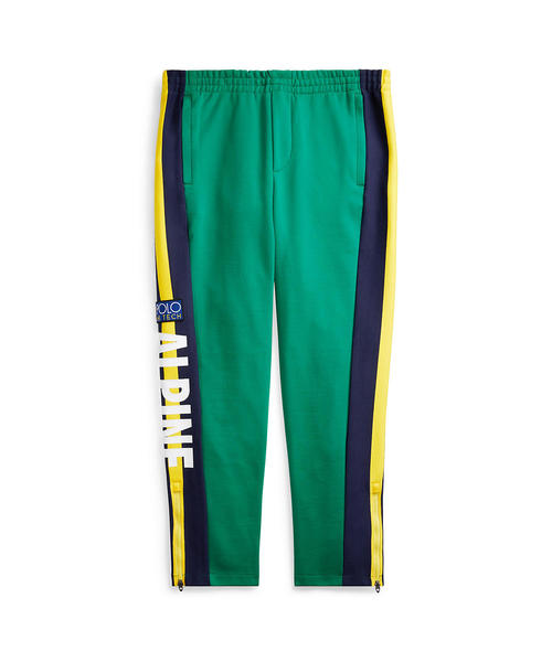 MNPOPNT17610039 Ralph Lauren の2018年秋のハイテクコレクションの1つ。90年代初頭の Polo のアイコニックなアスレチック風デザインにインスピレーションを得たスタイル。 ・内側にドローストリング付きの伸縮性のあるウエスト / 縫い合わされたフライ ・フロントにジップポケット2つ / 背面右にジップポケット ・両脚の外側にコントラストの効いた切り替え / 膝の裏に補強ステッチ ・右脚に Alpine のプリントと Polo Hi Tech のパッチ ・ジッパー付きのスリット入りの裾 ・コットン、ポリエステル ポロ ラルフ ローレン