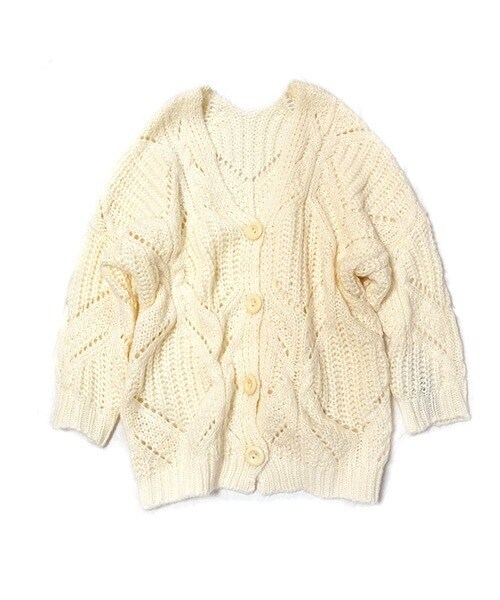 まるで手編みしたような、ゆったりとしたローゲージのニュアンスがかわいい。 寒さが本格的になったら、ジャケットの上に羽織るのも◎ ヒップラインがすっぽり隠れる長めの丈感と、ゆるっとワイドなデザインなのでレイヤードがしやすいのも魅力的です。