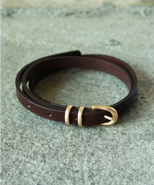 シンプルながらエッジの効いたデザインベルト。細めのベルトなのでブラウジングなどアレンジがしやすく、幅広いスタイリングに取り入れて頂けます。流行なく使いやすいベーシックアイテムです。