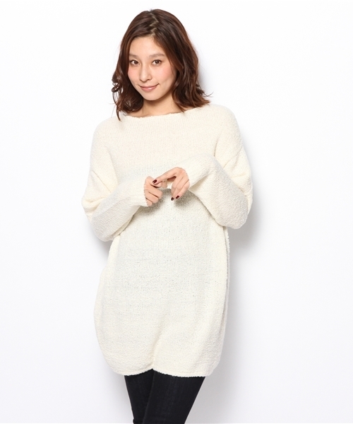 ふっくらとした膨らみのある、ブークレー素材のチュニックプルオーバー。軽やかなアクリルにウールをブレンドし、暖かな着心地に仕上げました。袖下にはタックを入れ、立体的なフォルムに。バックのネックにはゴールドのジッパーをあしらい、後ろ姿を印象づけるアクセントを添えています。ショートパンツを合わせて、ワンピース風に取り入れるのもおすすめです。 model:H168 B78 W60 H87 着用サイズ:2