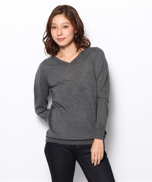 シルキーな素材感で、着心地抜群のVネックニットプルオーバーです。ポリエステルベースの滑らかな素材にウールを含ませ、冬にぴったりの暖かみをプラス。バスト位置の下にダーツ処理を施し、綺麗なフォルムで仕上げました。ヒップに掛かる長めのレングスで、合わせるボトムを選びません。インにシャツを重ねれば、スタイリングの鮮度もぐんとアップします。プラステ店舗へお問い合わせの際は下記品番をお伝えください品番:12-4101058 model:H168 B78 W60 H87 着用サイズ:2