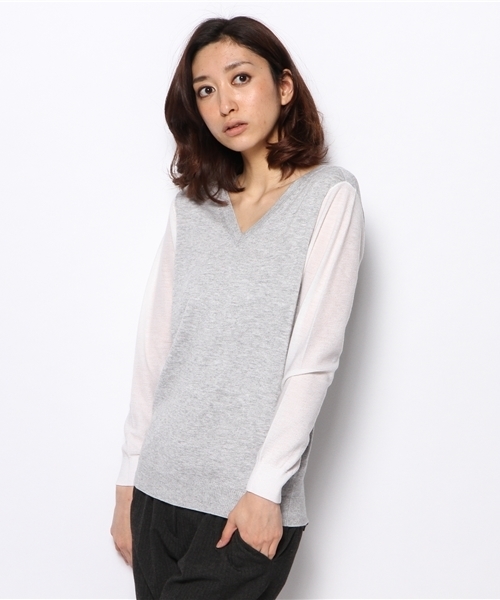 シルキーなタッチで、着心地抜群のVネックニットプルオーバー。身頃と袖で編地や色を変え、袖の透け感で女性らしさを引き出しました。ポリエステルベースの素材は軽くて柔らかく、冬にぴったりの暖かさも備えています。素材のコントラストを生かすため、ボトムはシンプルなパンツを合わせるのがおすすめです。プラステ店舗へお問い合わせの際は下記品番をお伝えください品番 :12-4101060 model:H171 B82 W60 H85 着用サイズ:2