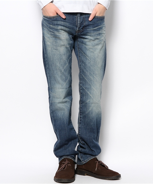 綺麗な色落ちとダメージ加工でリアルなユーズド感を再現したデニムパンツ。洗いを繰り返して10年間はき込んで育てたような風合いに仕上げました。リヨセル混素材は非常に滑らかで締め付け感がなくストレスフリーなはき心地です。腿周りのすっきりとしたストレートシルエットでスタイリングをシャープに引き立てます。ジャケットスタイルにほどよい抜け感を与えてくれる一本です。 ※こちらの商品は裾にダメージ加工を施しています。。 プラステ店舗へのお問い合わせの際は下記品番をお伝えください 品番:36-4106003 model:H175 B78 W72 H90 着用サイズ:28inch