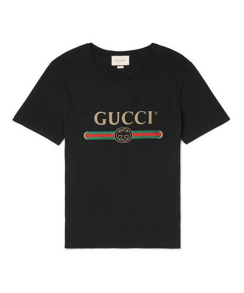 Business of Fashion estimates there's billions worth of fake fashion circulating in today's market and Gucci is among the brands most frequently knocked off. To combat the efforts of counterfeiters, Creative Director Mr Alessandro Michele has reissued an '80s logo, printed in faded ink on this lightweight cotton-jersey T-shirt. Wear yours with black jeans and a leather jacket. Shown here with Gucci trousers, Gucci jacket, Gucci sneakers, Gucci socks. - - Multicoloured cotton-jersey - Crew neck - 100% cotton - Hand wash - Made in Italy