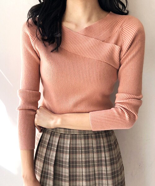 首元で斜めにクロスしたデザインがポイントのリブニット。 細かいリブで細身えしクロスしたVネックが上品に見せてくれる一枚です♪ワイドなデニムパンツやシンプルなスカートとあわせてレディライクにまとめるコーデがオススメ★ ※WEARに記載してある金額と、DHOLIC通販サイトに記載してある金額にシステム都合上、稀に誤差が生じます。正しい金額はDHOLIC通販サイトに記載された金額です。