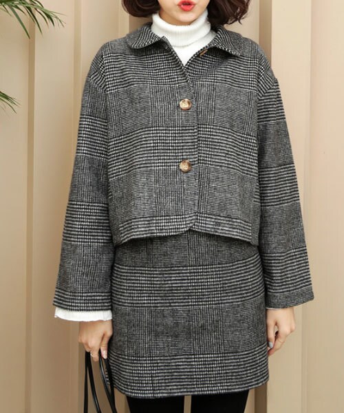 ジャケットは前がボタンで開閉しやすく短め丈。かしこまったシーンなどきちんとコーデにも◎。 ※WEARに記載してある金額と、DHOLIC通販サイトに記載してある金額にシステム都合上、稀に誤差が生じます。正しい金額はDHOLIC通販サイトに記載された金額です。