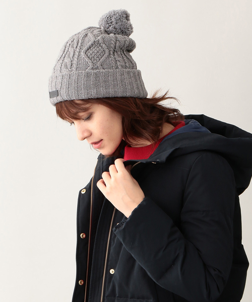〈リバーシブル仕様のニット帽〉 1枚で2色楽しめるリバーシブル仕様のニットキャップです。ポンポンはピンが付いているので取り外してブローチとしても使用可能。その日の気分に合わせてお使いいただける3WAY仕様です。ホワイト(02):ホワイト×グレー、グレー(07):グレー×ネイビー、ブラック(09):ブラック×ネイビー