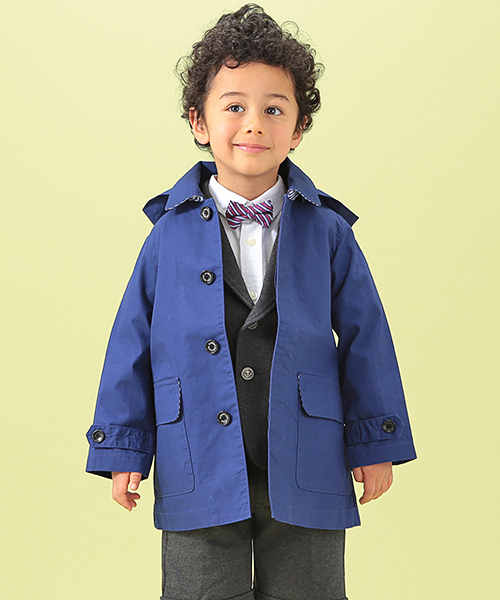 大人顔負け、美シルエットのステンカラーコートです♪ 厚手の布帛で作ったステンカラーコート。非常にしっかりとした生地で仕立て良く仕上がっています。スプリングコートとして、カジュアルにも綺麗めにも使えるアイテムです。フードは取り外し可能ですのでシーンに合わせてお楽しみください。 店舗へお問い合わせの際は下記品番をお伝えください。 品番:94-19-0007-142
