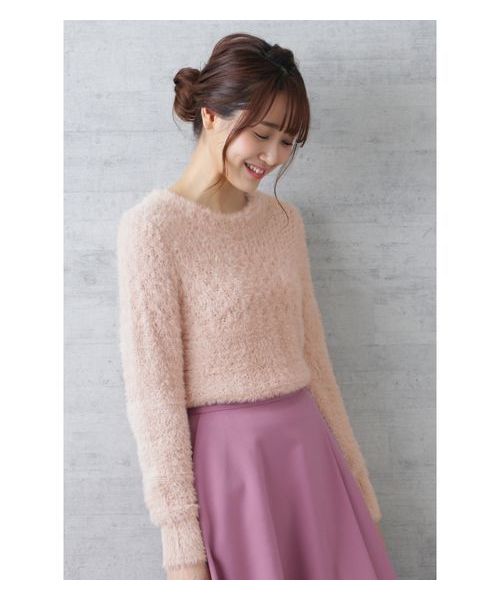 思わず触れたくなる、ふわふわのフェザー糸で編み上げた愛されムードなプルオーバーニット。さっと袖を通すだけで今年らしい表情に仕上げてくれるトレンドライクな1枚です。毛足のあるフェザーの隙間から覗く柄編みが目を惹くデザインポイント。柔らかな風合いが活きる優しいカラーラインナップでご用意しました。