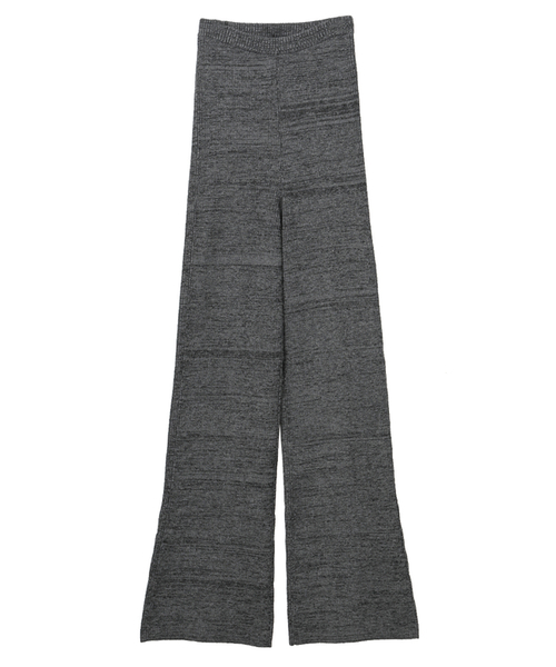 メランジの編み地が高級感があるロング丈のニットパンツ。中肉でしっかりした編み地で型崩れしにくいのが特徴です。さりげないベルボトムシルエットで、スタイルアップが期待できます。