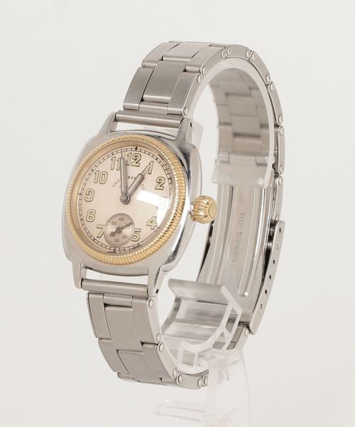 VAGUE WATCH Co の初代モデル「COUSSIN EARLY」のアップデートバージョン。コマの中に仕込まれた金属のバネによって伸縮可能なエクステンションベルトはステンレスの薄い板を巻いて成型。 コマのサイドをビス打ちで留めて作り上げるなど現在では生産することの難しいクラシカルな仕様。 YG、SSのコンビネーションに仕上げた時計本体ケースはひとつずつ職人の手によりエージング加工を施して長年使用したような風合いを表現しています。 ブランド品番 CO-L-008-SB