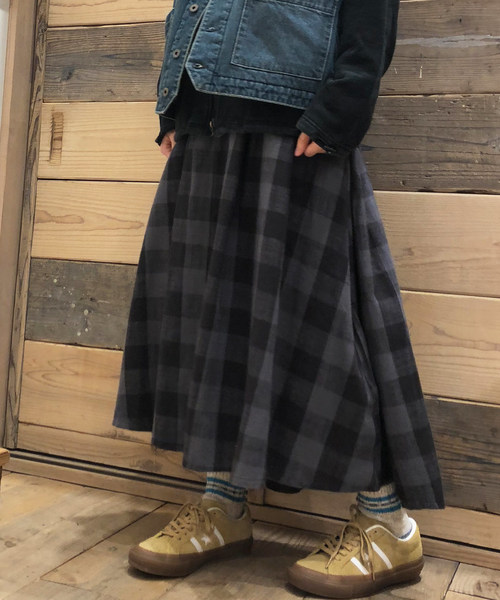 起毛したブロックチェック生地で仕上げた定番のボリュームロングスカート。シンプルな定番カラー展開で、どんなアイテムとの相性も抜群です。カジュアルからキレイめまでジャンル問わず愛されるアイテムは唯一無二の存在。