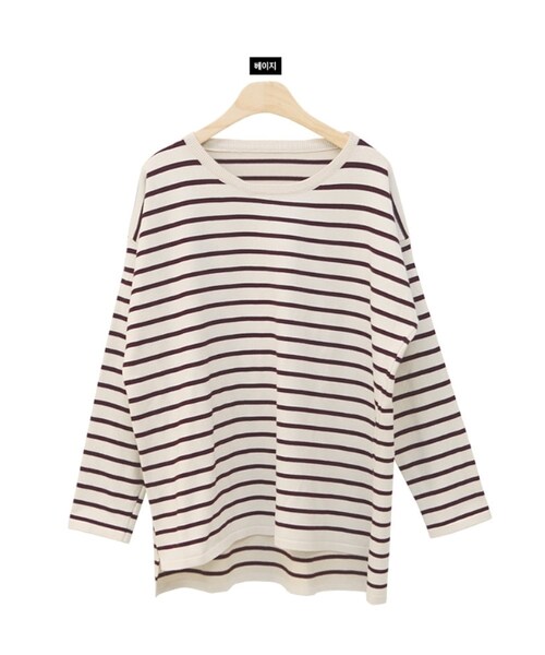 普段の着こなしに使いやすい定番ボーダー柄ニット。 前後でアンバランスにな裾が今年らしい表情をプラスしてくれます。 前の部分だけボトムスインすると旬顔な着こなしが叶います♪