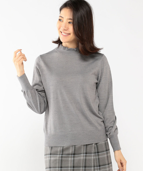 フリルネックが表情をフェミニンに演出 レトロなフリルネックとふんわりした袖が特徴的なウォッシャブル仕様のニットプルオーバーです。どんなボトムとの着こなしもフェミニンな雰囲気に仕上がるアイテム。ほんのりツヤ感のあるハイゲージニットで、きれいめスタイルにも最適です。 洗濯:手洗い可 ストレッチ有りです。