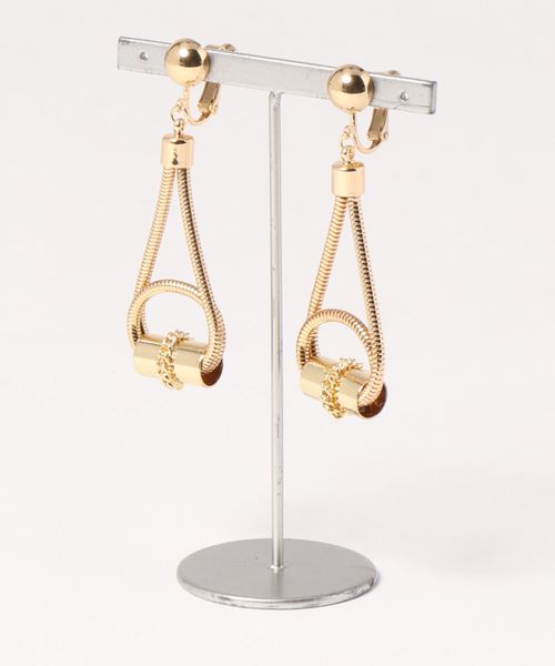 太めのチェーンにパイプをあしらったデザインがスタイリッシュなイヤリング。耳元で揺れる様が目を引き、耳元にエッジィなアクセントをプラスしてくれます。無骨な雰囲気がおしゃれで、カジュアルからモードまで幅広いスタイリングにマッチするおすすめの逸品です。