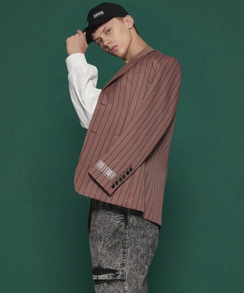 やや大きめの肩幅のボクシー・ラインのストライプテーラードジャケット。 繊細な表面感と滑らかな肌触りが特徴のストライプ柄。 総毛芯による本格的な仕立てのジャケット。 model:H186 B90 W74 着用サイズ:2