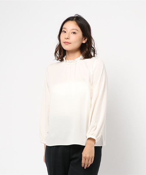 フリリーなハイネックがクラシカルな女性らしさを印象付けるブラウス。 旬のパフスリーブも何気ない手元の動作を綺麗に魅せてくれるポイント。ベーシックなシルエットでスタイリングしやすいのも魅力です。 パンツにもスカートにも合わせやすい1枚は、着こなしの幅も広がります。