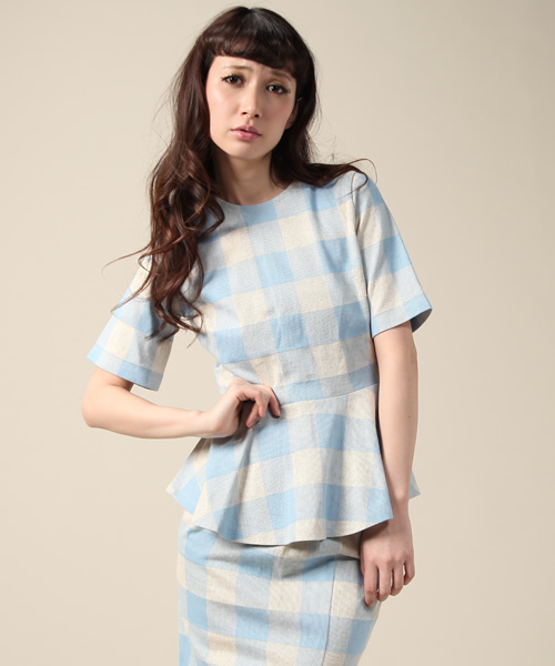 チェック柄の中でもブロックチェックは今季イチオシ!コレクションでも多くみられ、注目されています。素材は綿×麻を使用し、春夏にぴったりのさらりとした素材感に仕上げました。ウエストベルトから優雅に広がるぺプラムがレディな雰囲気。※ホワイト×ブルーにもベルトが付きます。 model:H166 B80 W58 H85 着用サイズ:ONE SIZE ※画像の商品はサンプルです。 実際の商品と仕様、加工、サイズが若干異なる場合がございます。