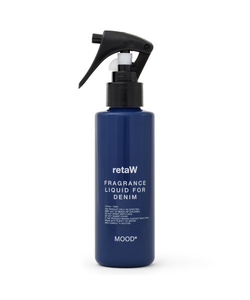 MOOD*デニムの為に作られた、甘さの中にミントの清涼感が広がるフレッシュな香り。 スプレータイプのデニム・リフレッシュナー(デニム用スプレー)。 お気に入りのデニムを除菌・消臭するとともに、香りをプラスして清潔に保ちます。 携帯に便利なサイズで展開。 シルバー基調にインディゴブルーカラーのボトルデザイン。 retaWより、お気に入りのデニムをケアする新提案。 【内容量】5.0fl.oz/150ml