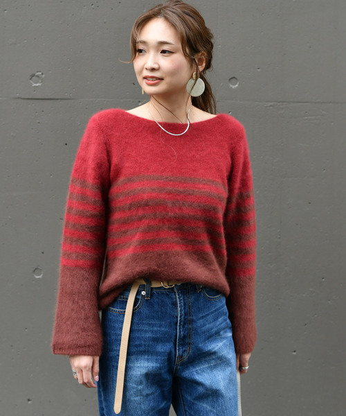 ふわふわとした質感が魅力のニットプルオーバー。ゆったりとしたシルエットながら、デコルテラインがきれいに見えるボートネックで女性らしく着て頂けます。素肌に触れてもチクチクしにくく、ストレスフリーな一着です。カシミアのような超極細糸で、独特の柔らかさと軽量で保温性に優れているのが特徴です。