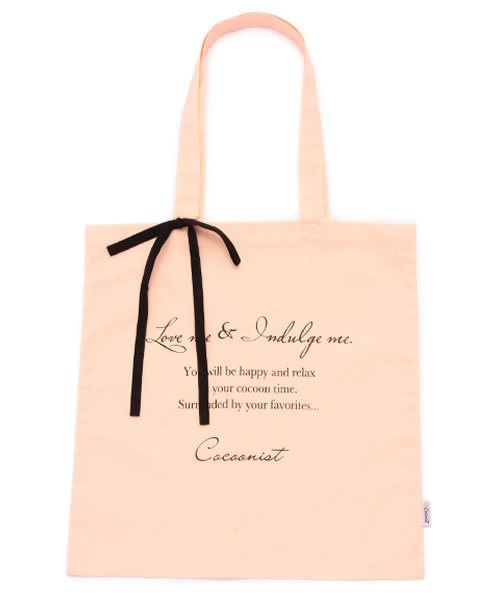 薄くてやわらかい綿生地を使った、ナチュラルな雰囲気のトートバッグです。持ち手のリボンチャームがアクセント。「Love me & Indulge me(私にたっぷり、愛とわがままを)」のメッセージが入っています。A4サイズの雑誌やノートなどが入る使いやすいサイズで、普段は小さくたたんでバッグに入れて、サブバッグとしてお使いただけます。プレゼントを入れて渡しても、かわいらしい演出ができそう。 ★Cocoonist(コクーニスト) Relax&Happinessをコンセプトに、一日の終わりの「おうち時間」を前向きな気分でくつろげる、ルームウエアやリラクシンググッズを揃えたブランドです *横約35cm×縦約36.5cm×持ち手の高さ約25cm *水濡れや摩擦などにより、色落ちや色移りするおそれがありますのでご注意ください *お洗濯はお避けください