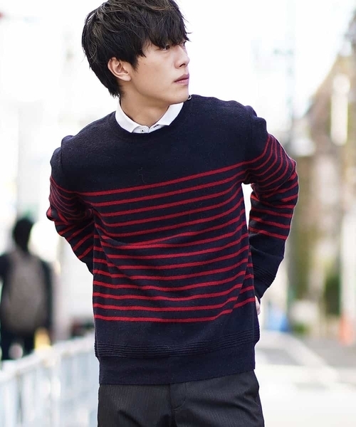 【こだわりの素材】 ラムウールをベースにした、毛足が長くふんわりした風合いに仕上げました。 高級感がしっかりと伝わる質感にこだわりました。魅肩釦がアクセントのボーダープルニットです。 毛質が細く、滑らかな見栄えと手触りで、他のニットよりも高級感がございます。 【こだわりポイント】 左肩開きに(※一部今季から作製したオリジナル【ロゴ刻印釦】を使用。)最大限度に目を詰めて、しっかりとした着心地とキレイ目面製品に編みあげています。 これにより型崩れがし難く、着心地が良いクラシカルな一枚に! アクセントに左肩を釦開きに仕上げたベーシックでありながら個性溢れる逸品。 ボーダーをベースとした不動の人気デザインで、贈り物にも最適なアイテム。