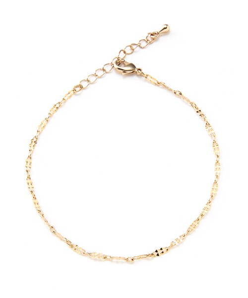 特殊なカットを施したチェーンが一層ゴールドの輝きを放つブレスレット。 華奢で余分な装飾をなくしたデザインが、女性らしい手元を演出。 普段使いからパーティーシーンまで活躍してくれるアイテム。 ★素材の特性上、カラーが、写真と多少異なる場合があります。
