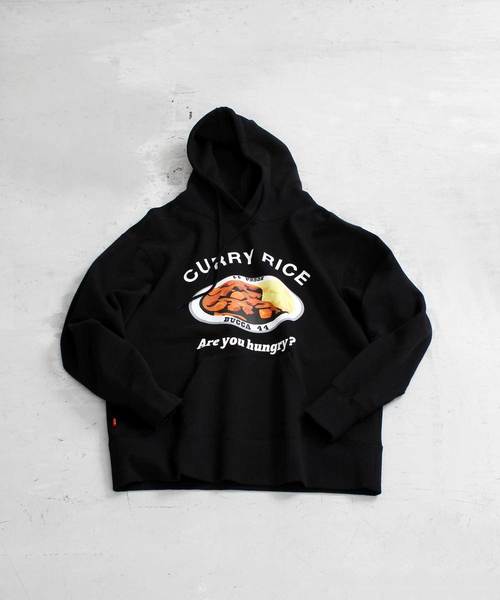 見てるだけでおなかが減っちゃう!?インパクト抜群のカレーライスプリントアイテムの新作入荷 男らしさのあふれるフードプリントは 普段のスタイリングにアクセントを加えれます!! ご好評頂いている半袖スウェットの新作になります! パーカーでは新色のグリーンを追加! 半袖スウェットは⇒BU18SP05-M005 プレゼントにも最適なアイテムです!! 男女問わずユニセックスでご使用いただけます。