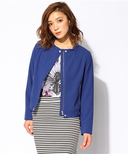 ●ノーカラー フライフロント ジップ ジャケット● クールでスタイリッシュなフライフロントのノーカラージャケット。コーディネートに合わせやすいミニマルなデザイン性とモダンでスタイリッシュな表情がワンランク上のスタイルを演出する逸品。 model:H160 B82 W58 H83 着用サイズ:ONE SIZE