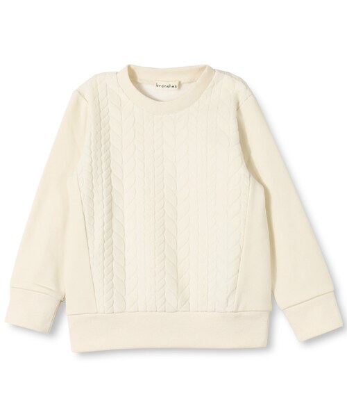 ケーブル柄の模様が一気に秋冬ムードを高めてくれるトレーナーです。シンプルなデザインに仕上げながらケーブル柄で少しきれいめに見え、お出かけコーディネートにもおすすめです。 ※80cmから90cmは、首もとがスナップボタン仕様となります。