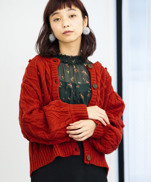 ハートモチーフのケーブル編みが着こなしをキュートに ケーブル編みで仕上げたニットカーディガン。単色仕様ながらも、遊び心のあるデザインで気軽に着こなしのアクセントになります。 肌触り良く、リラックスして快適に着用頂けます。 程よくゆとりのあるシルエットでフェミニンな雰囲気を演出してくれるひと品。 ライトアウターとしてサラッと気軽に羽織れるのも嬉しいポイント。 今季はベレー帽やチョーカーなど、小物で遊びを効かせたコーディネートもオススメです。