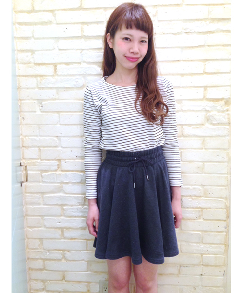 Kastane(カスタネ)カラフルな糸がさりげなく織り込まれた布地が、優しい印象のスカート。ウエストがゴムで、紐で調節もできるので、スッキリと自分サイズで着ていただけます。