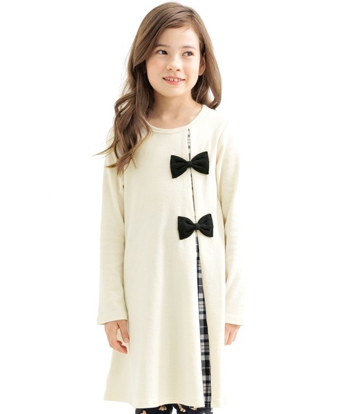 \ 2025年秋冬新色 ブラック系2が登場 / 【本体素材】 綿95% ポリウレタン5% ※柄・リボン部分の素材は異なります ふわっと広がるフレアラインで思わずくるっとまわりたくなる♪ ダブルリボンとチラっと見える異素材の柄で今季の主役級アイテムになること間違いなし!