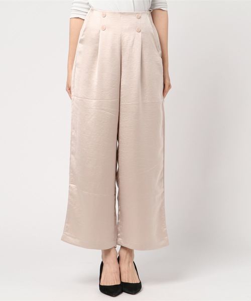 とろみのある生地感が着心地抜群の、新しさを感じさせるマリンパンツです。ウエスト周りはすっきりとしているので、トップスをインした時もきれいに決まります。フロントのボタンもインスタイルのアクセントに☆ワイドめのシルエットですが落ち感があるので、長めのトップスやシャツブラウスと合わせたスタイリングもおすすめ!光沢感があり上品な印象でカジュアルになりすぎないところも◎スニーカーとのスタイリングも抜け感のある大人な雰囲気に仕上がります。存在感がありながらも様々なトップスと合わせやすく、着こなしの幅が広がるアイテムです。