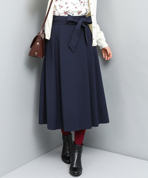 動くたびに揺れる上品なフレアシルエット。ベルトマークで華奢見え効果も狙える大人可愛いミモレ丈スカート。【泉里香Recommend STYLE】 動きのあるフレアシルエットとミモレ丈のバランスが絶妙なスカート。 落ち感のある滑らかな素材が生み出す、しなやかなラインがより女性らしいさを引き立てます。 リボンベルト付きなので、コンパクトなトップスとの相性もグッド。ウエストマークでスタイルアップ効果も狙える一枚です。 ・動きのある華やかなフレアシルエット ・落ち感素材とミモレ丈が上品さと女性らしさをアピール ・スタイルアップ効果も狙えるベルト付き