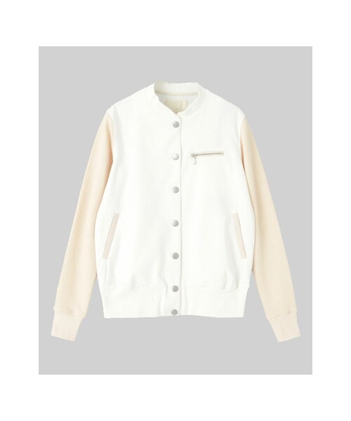 袖と身頃で配色になったブルゾンは、色だけでなく素材も変えて作ったこだわりのアイテム。素材感や配色具合を楽しめるよう、他はあえて装飾を付けずシンプルに仕上げました。その中で左胸のジップがアクセントに◎スカートと合わせてMIXスタイルで!※詳しい洗濯方法については、商品の品質表示タグをご覧ください
